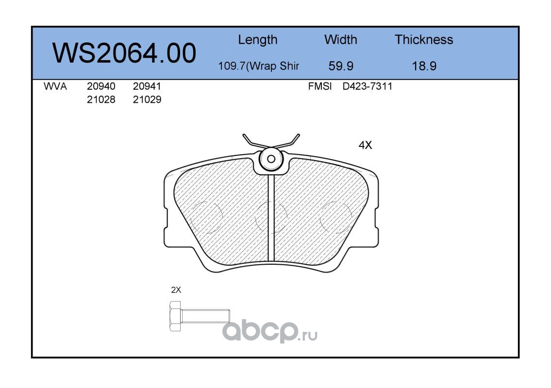 | JEENICE | WS202602 | Колодки тормозные дисковые | перед | | ||