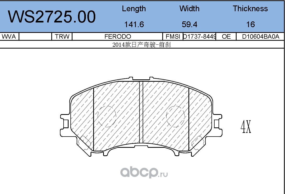 | JEENICE | WS337502 | Колодки тормозные дисковые | перед | | ||