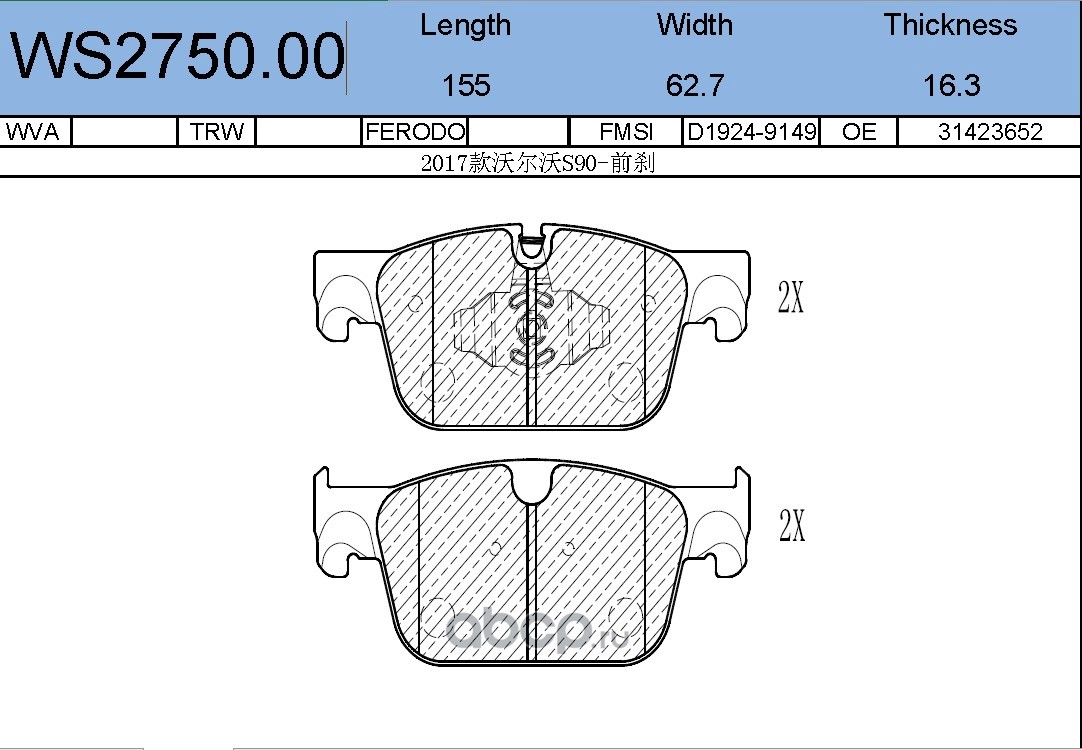 | JEENICE | WS275000 | Колодки тормозные дисковые | перед | | ||