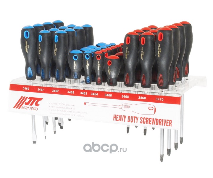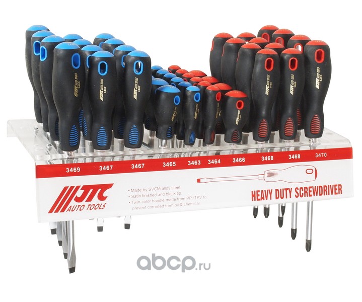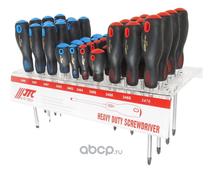 | JTC | JTC3470S | Набор отверток силовых (PH0-PH3 SL3.0-SL8.0) на стенде 44шт JTC /1 | ||