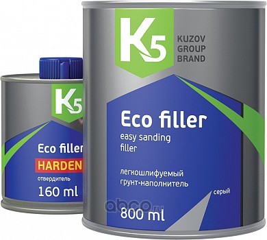 Грунт К5 Eco Filler - легкошлифуемый грунт-наполнитель (800+160 мл) в комп. с отвердителем серый