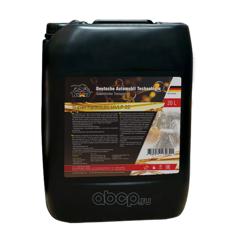 | KAT-Lubricants | SH100202 | Гидравлическое масло K.A.T Super hydraulic HLP 32 (mineral) 20л | ||