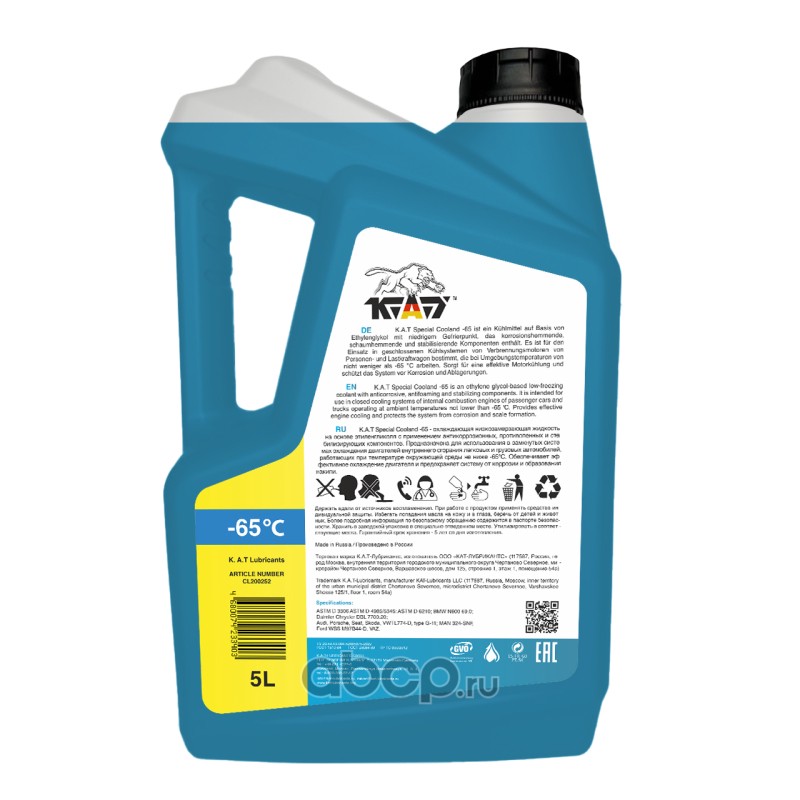 | KAT-Lubricants | CL200252 | Антифриз K.A.T Special Coolant (-65), A-65 5л | ||