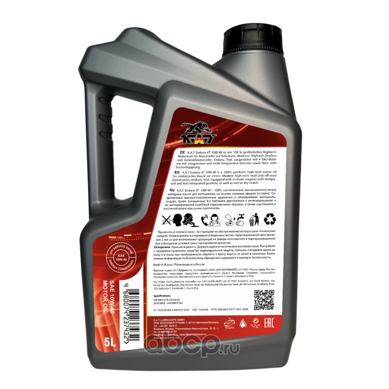 | KAT-Lubricants | ER100031 | Моторное масло для мототехники K.A.T Enduro 4T 10W-40 5л синтетическое | ||
