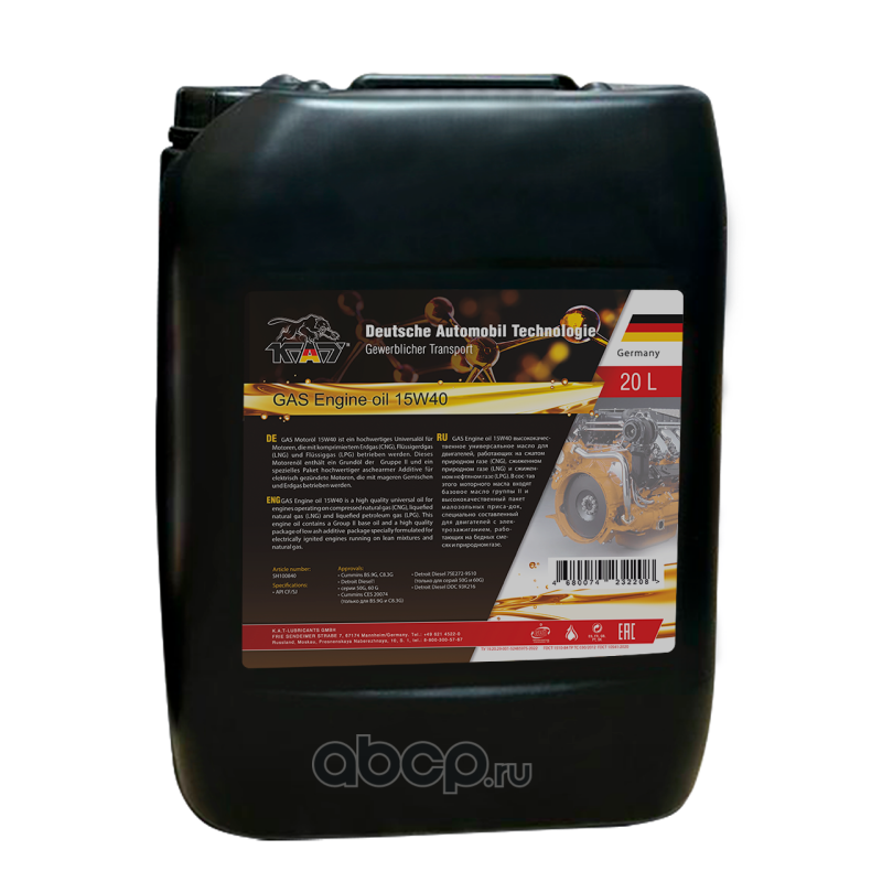 | KAT-Lubricants | SH100840 | Масло моторное полусинтетика KAT-Lubricants GAS Engine oil 15W-40 20 л. |