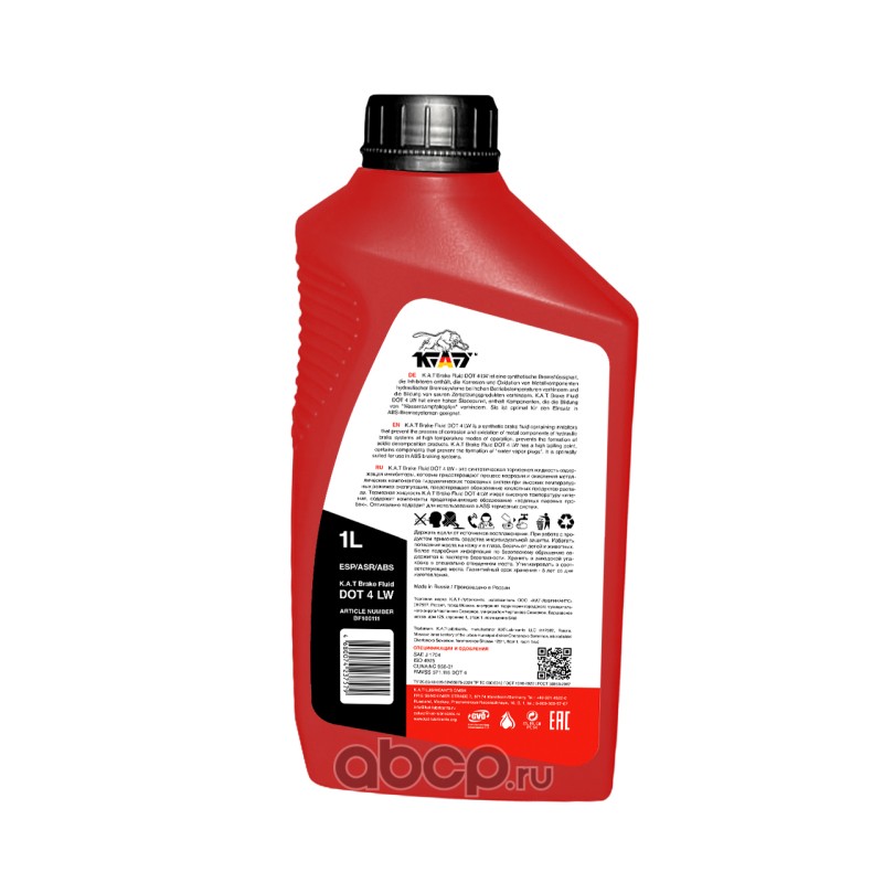 | KAT-Lubricants | BF100111 | Тормозная жидкость К.А.Т Brake Fluid DOT 4 LW 1л синтетическая | ||