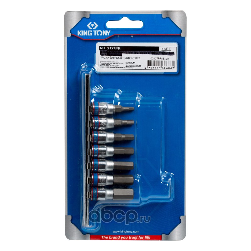 Набор торцевых насадок 1/4"", Hex, 3-10 мм, L = 37 мм, 7 предметов