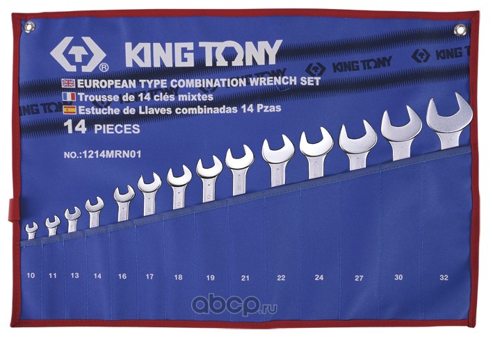 KING TONY Набор комбинированных ключей, 10-32 мм, чехол из теторона, 14 предметов