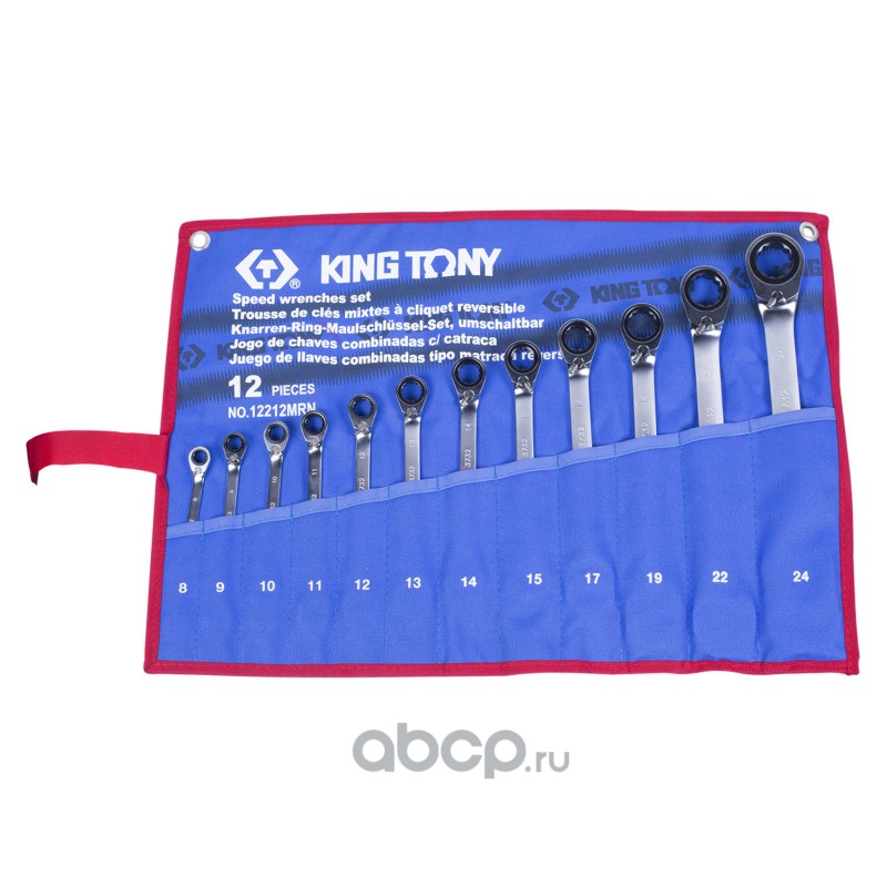 KING TONY Набор комбинированных трещоточных ключей, 8-24 мм, чехол из теторона, 12 предметов