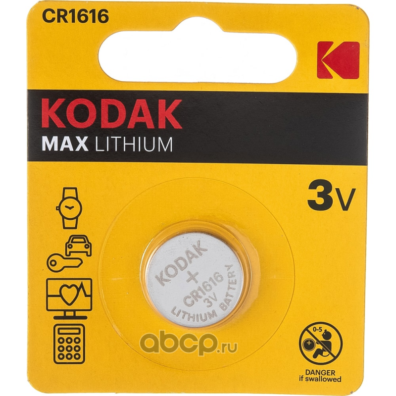 | KODAK | Б0029111 | Батарейки Kodak CR1616-1BL MAX Lithium (60/240/50400) | ||