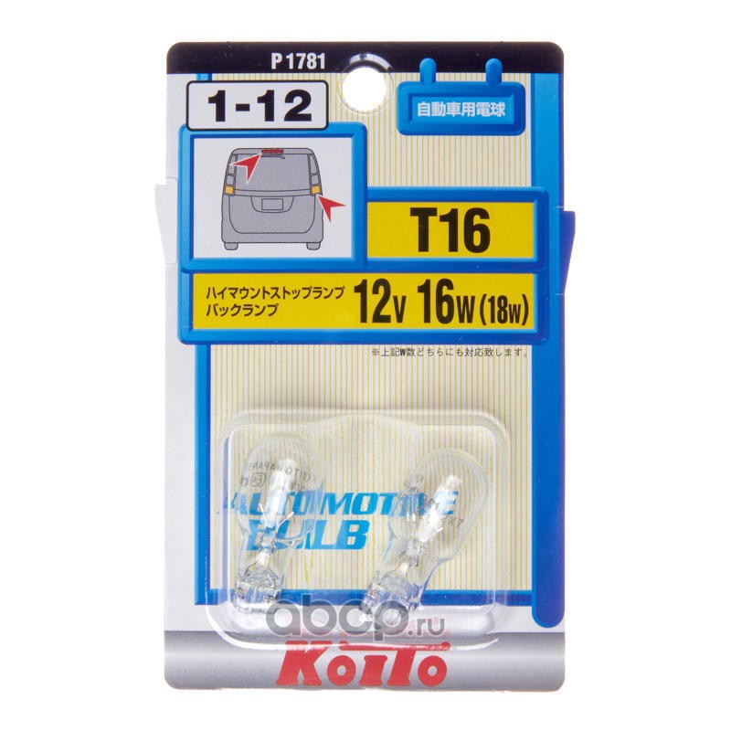 | KOITO | P1881 | Лампа накаливания KOITO W21W W3x16d 12V 21W 2шт. | ||
