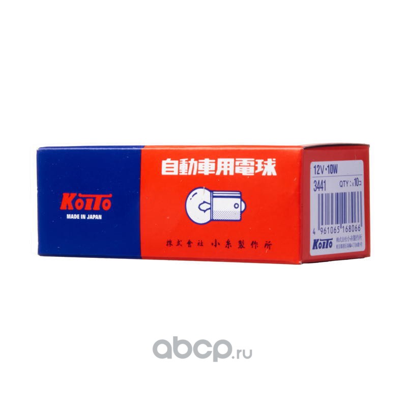 | KOITO | 3441 | Лампа накаливания KOITO R10W BA15s 12V 10W 10шт. | ||
