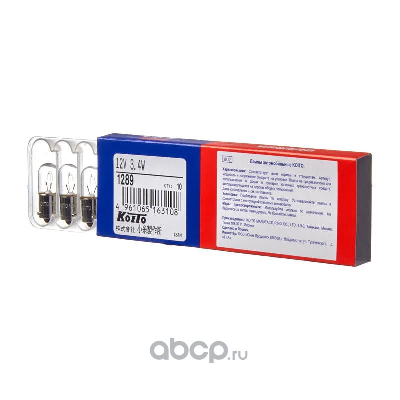 | KOITO | 1289 | Лампа дополнительного освещения (кратность 10 шт.) | ||