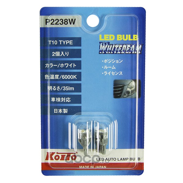 | KOITO | P2238W | Лампа светодиодная 12V LED T10 (комплект 2 шт.) | ||