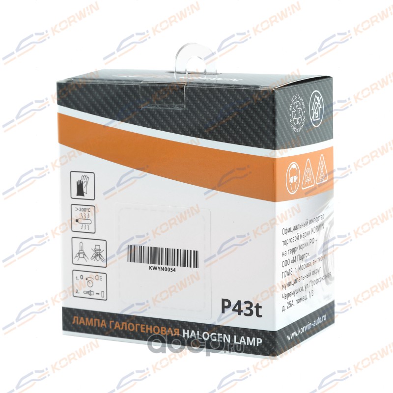 KORWIN KWYN0054 Лампа галогеновая KORWIN H4 P43t-38 12v 60/55W 2шт.