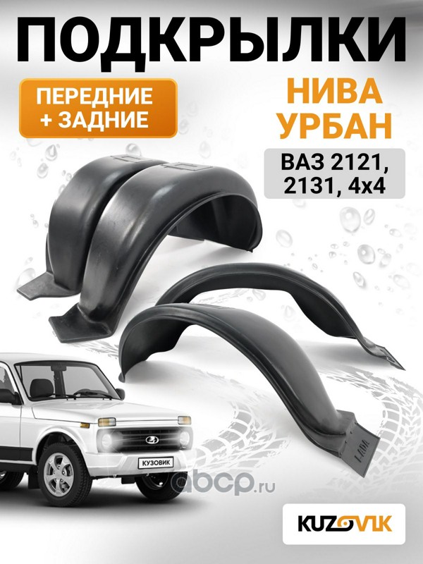 KUZOVIK | KZVK5700081522 | Подкрылки передние+задние ВАЗ Нива 2121, 2131, 4х4, Урбан с брызговками комплект 4 шт левые+правые | ||