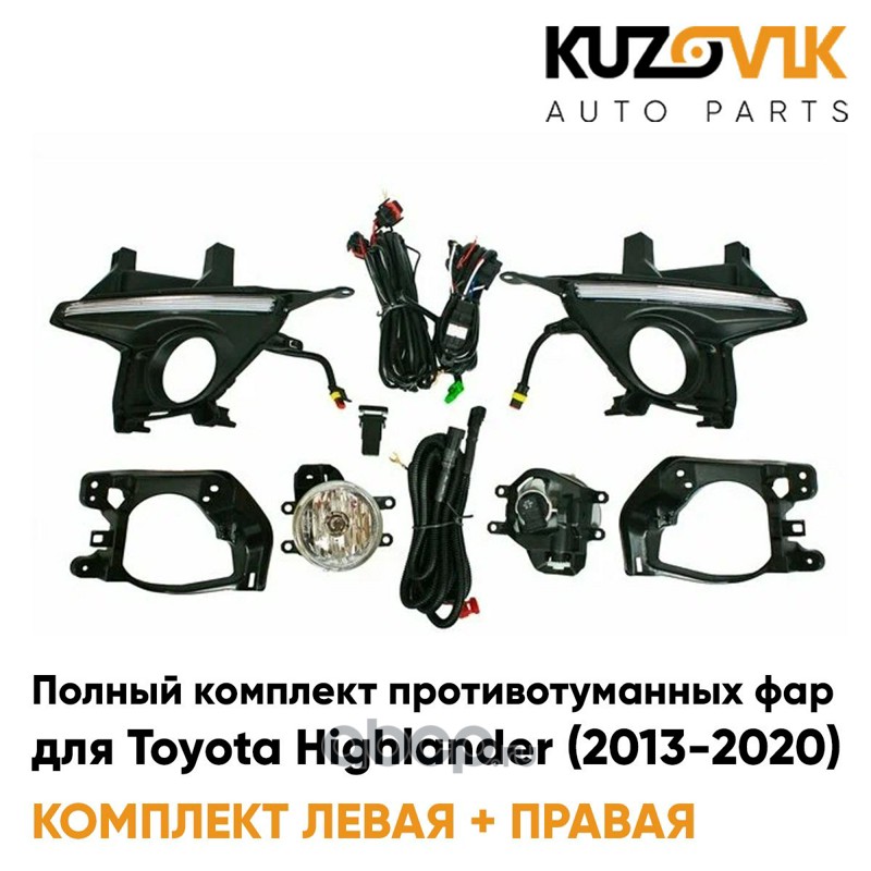 Фары противотуманные полный комплект Toyota Highlander (2013-2020) с рамками, лампочками, проводкой