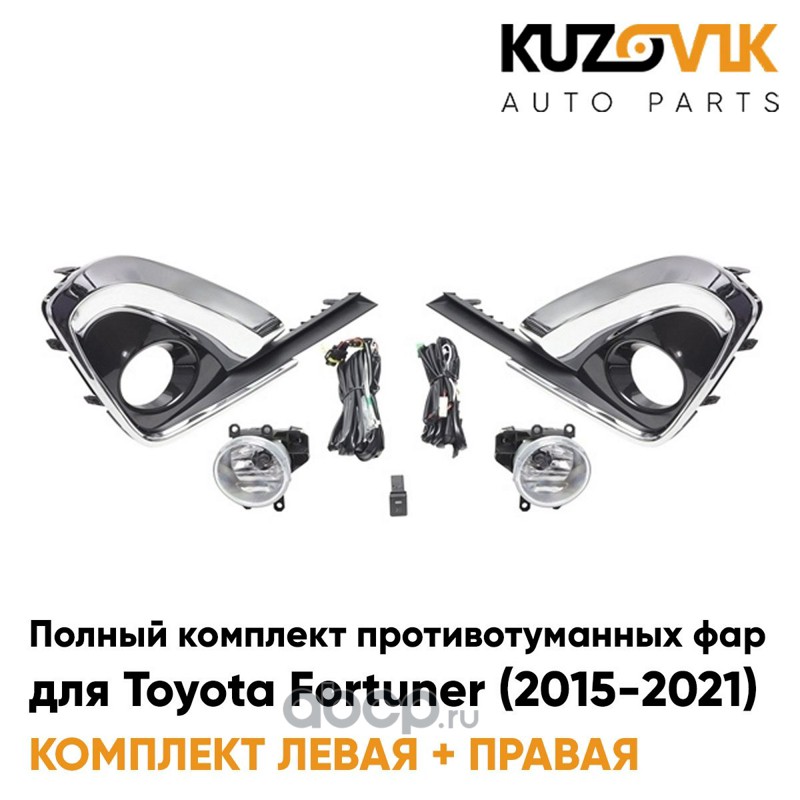 Фары противотуманные полный комплект Toyota Fortuner (2015-2021) с рамками хром, проводкой, кнопкой