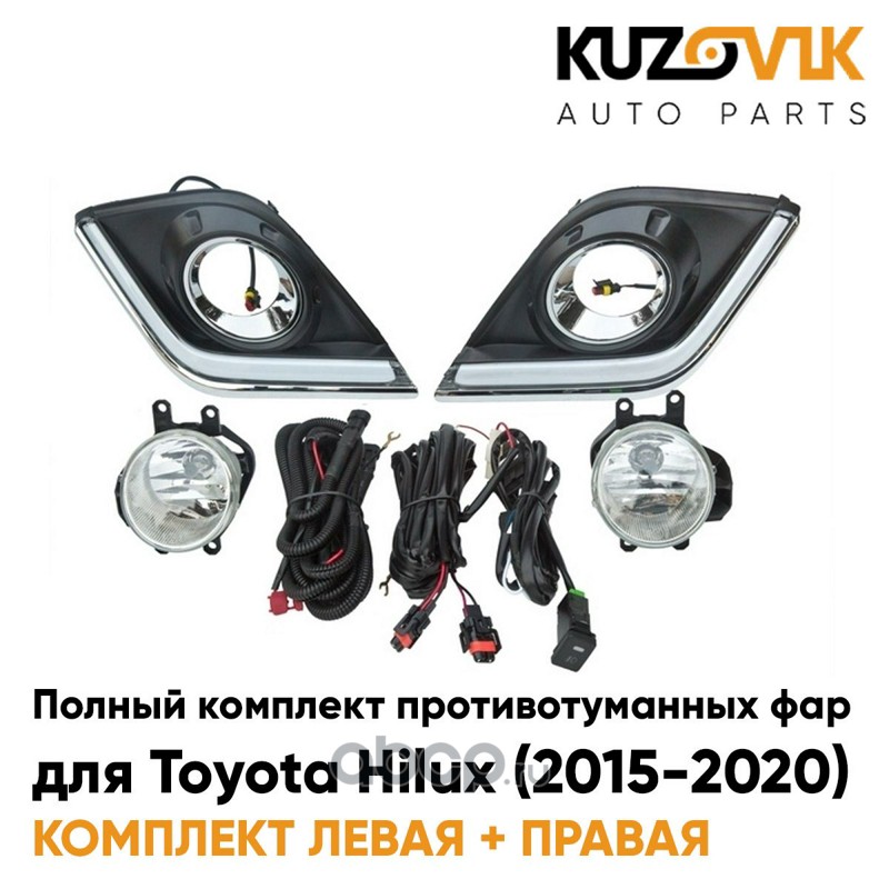 Фары противотуманные полный комплект Toyota Hilux (2015-2020) с рамками хром, лампочками, проводкой