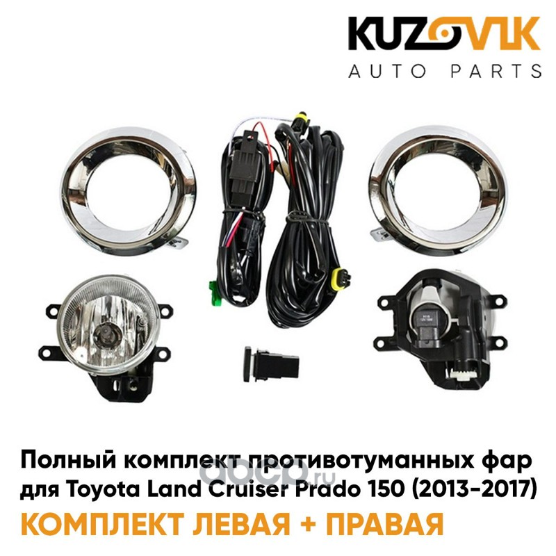 Фары противотуманные полный комплект Toyota Land Cruiser Prado 150 (2013-2017) с рамками хром