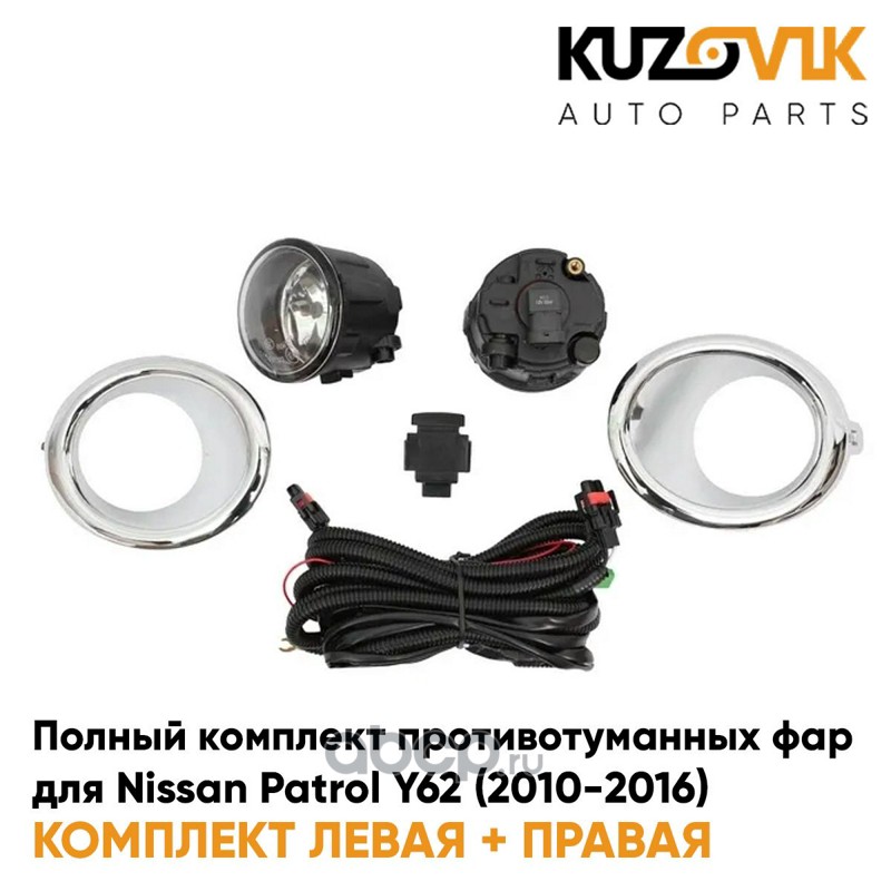 Фары противотуманные полный комплект Nissan Patrol Y62 (2010-2016) с рамками хром, проводкой