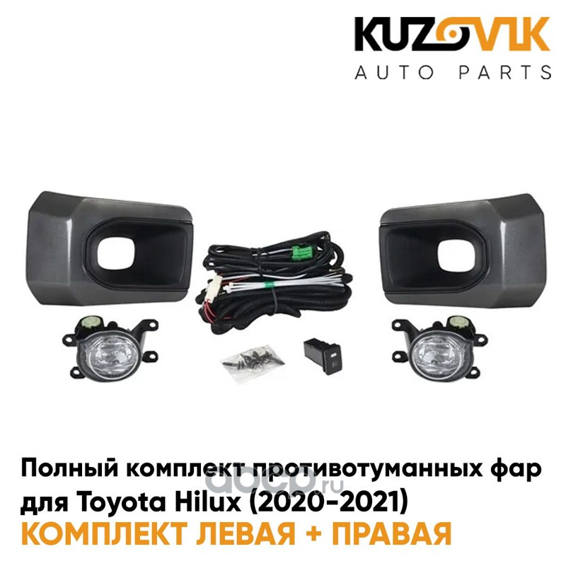 Фары противотуманные полный комплект Toyota Hilux (2020-2021) с рамками, проводкой, кнопкой