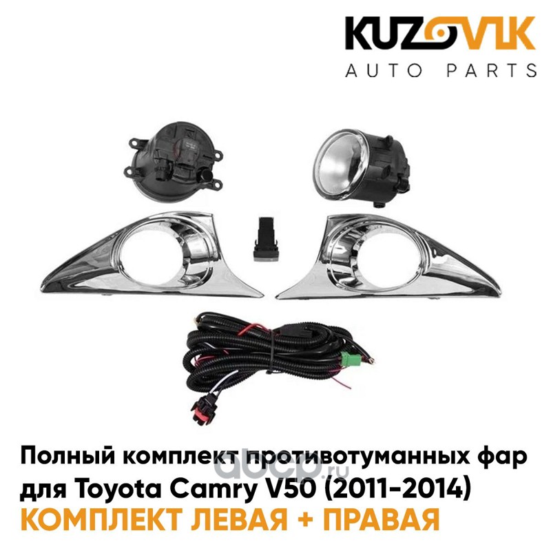 Фары противотуманные полный комплект Toyota Camry V50 (2011-2014) с рамками хром, проводкой, кнопкой