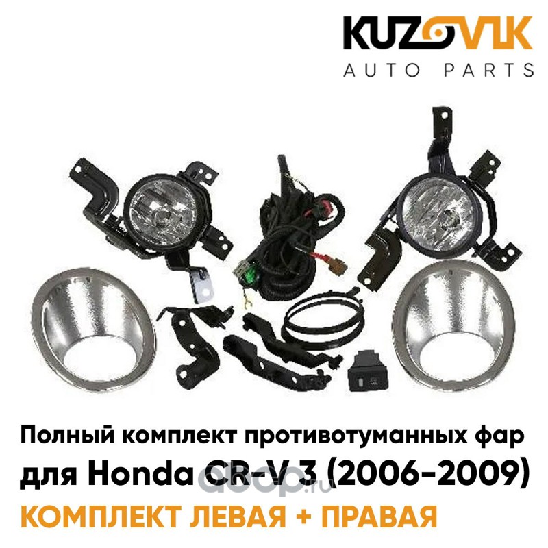 Фары противотуманные полный комплект Honda CR-V 3 (2006-2009) с рамками хром, проводкой, кнопкой