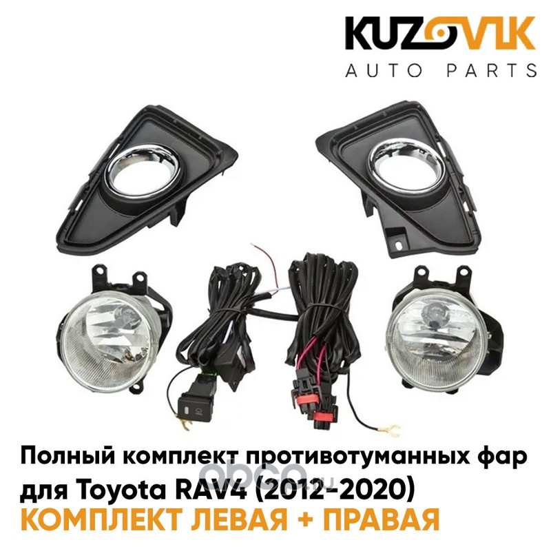 Фары противотуманные полный комплект Toyota RAV4 (2012-2020) с рамками хром, лампочками, проводкой
