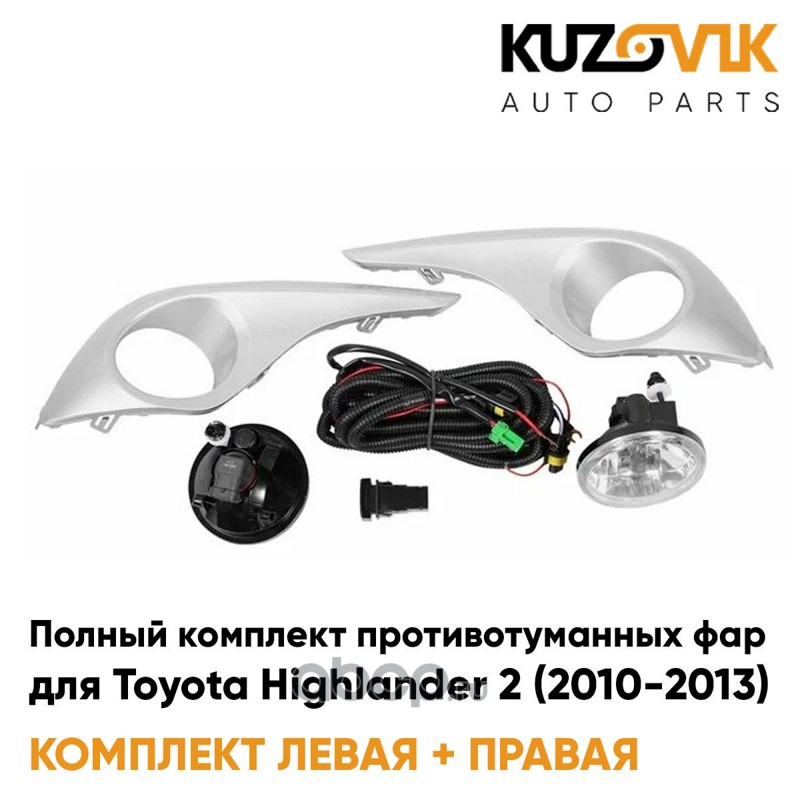 Фары противотуманные полный комплект Toyota Highlander 2 (2010-2013) с рамками серебро, проводкой