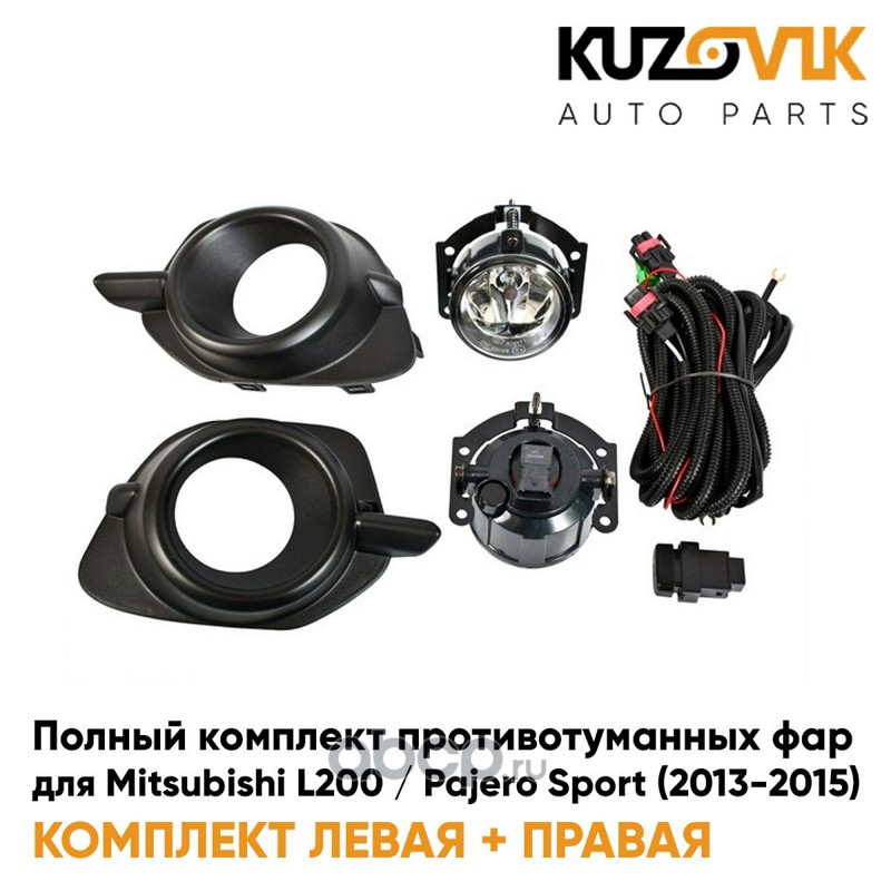 Фары противотуманные полный комплект Mitsubishi L200 / Pajero Sport (2013-2015) с рамками, проводкой