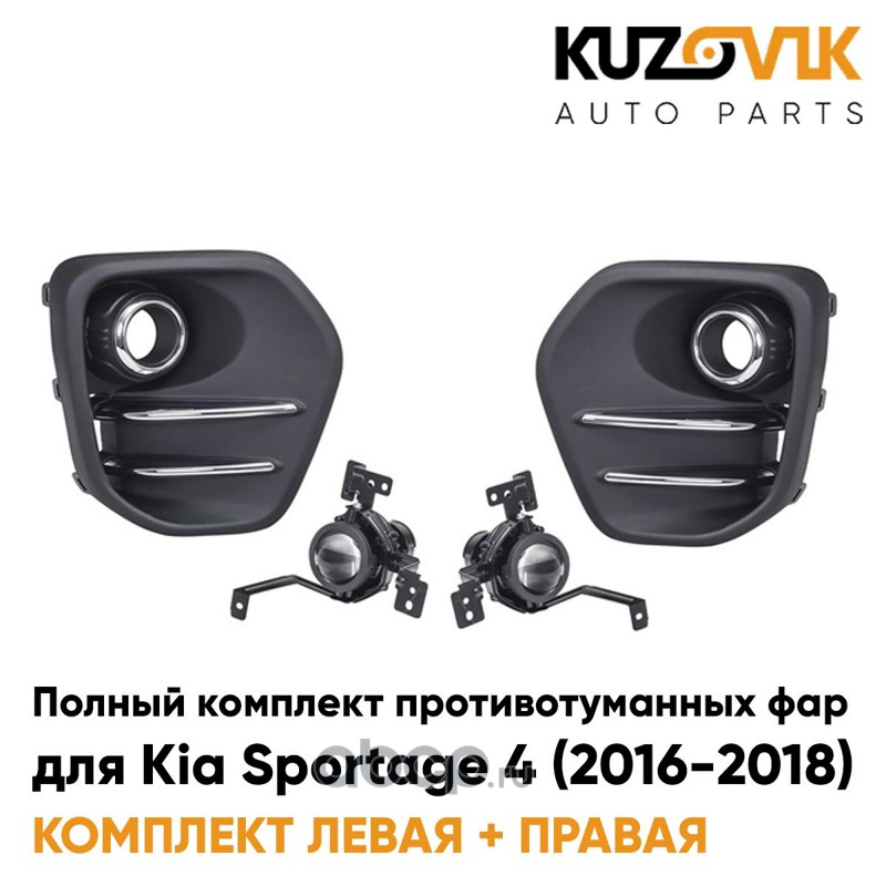 Фары противотуманные полный комплект Kia Sportage 4 (2016-2018) с рамками хром