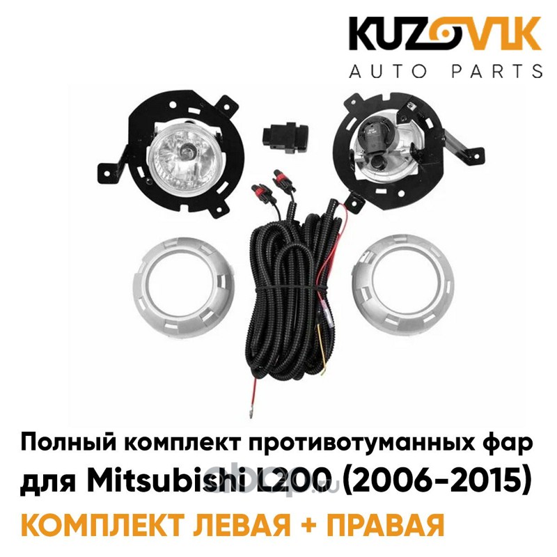 Фары противотуманные полный комплект Mitsubishi L200 (2006-2015) с рамками серебро, проводкой