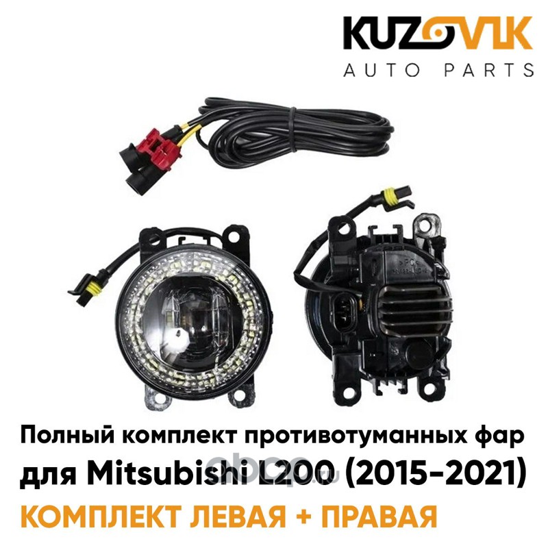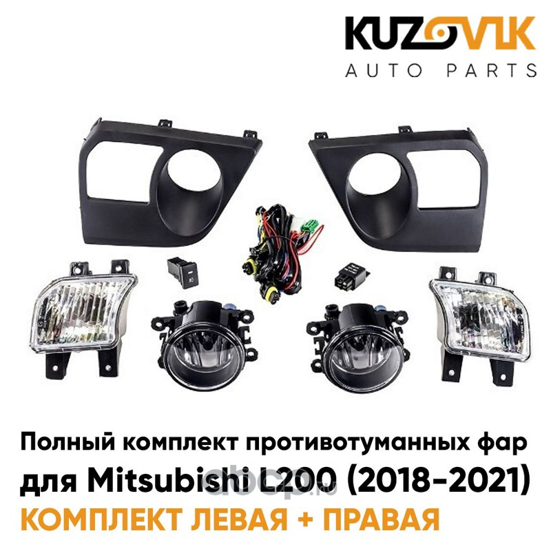 Фары противотуманные полный комплект Mitsubishi L200 (2018-2021) с рамками, проводкой, кнопкой