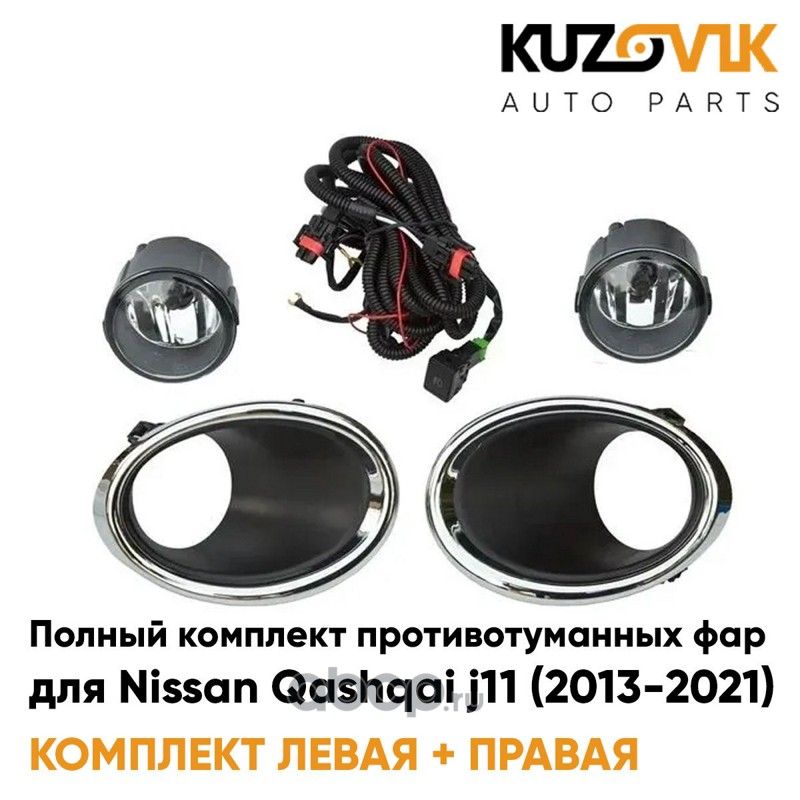 Фары противотуманные полный комплект Nissan Qashqai j11 (2013-2021) с рамками хром, проводкой