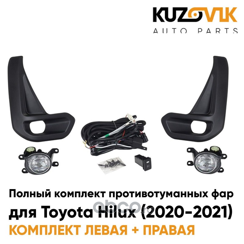 Фары противотуманные светодиодные полный комплект Toyota Hilux (2020-2021) с рамками, проводкой