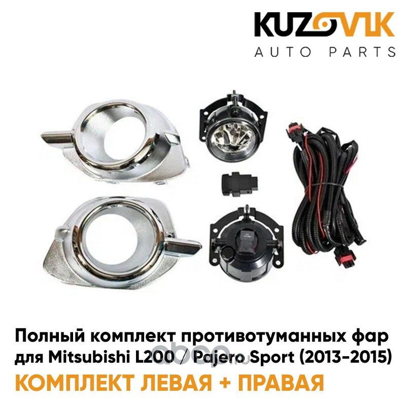 Фары противотуманные полный комплект Mitsubishi L200 / Pajero Sport (2013-2015) с рамками хром