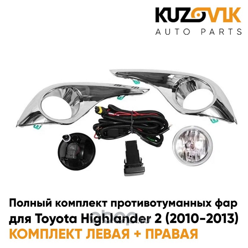 Фары противотуманные полный комплект Toyota Highlander 2 (2010-2013) с рамками хром, проводкой