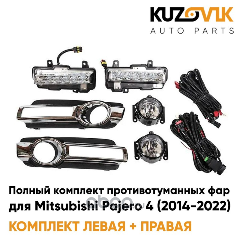 Фары противотуманные полный комплект Mitsubishi Pajero 4 (2014-2022) с рамками хром, проводкой