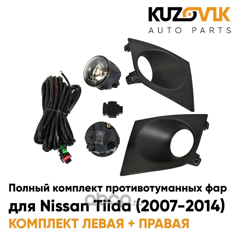 Фары противотуманные полный комплект Nissan Tiida (2007-2014) с рамками, лампочками, проводкой