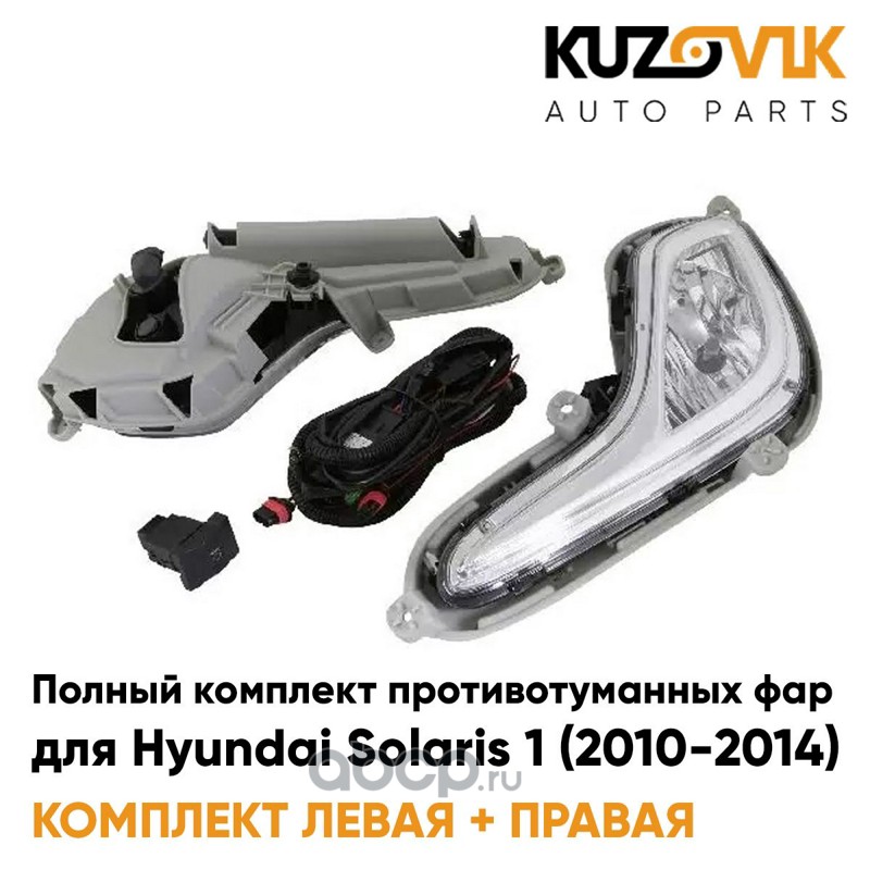 Фары противотуманные полный комплект Hyundai Solaris 1 (2010-2014) с лампочками, проводкой, кнопкой