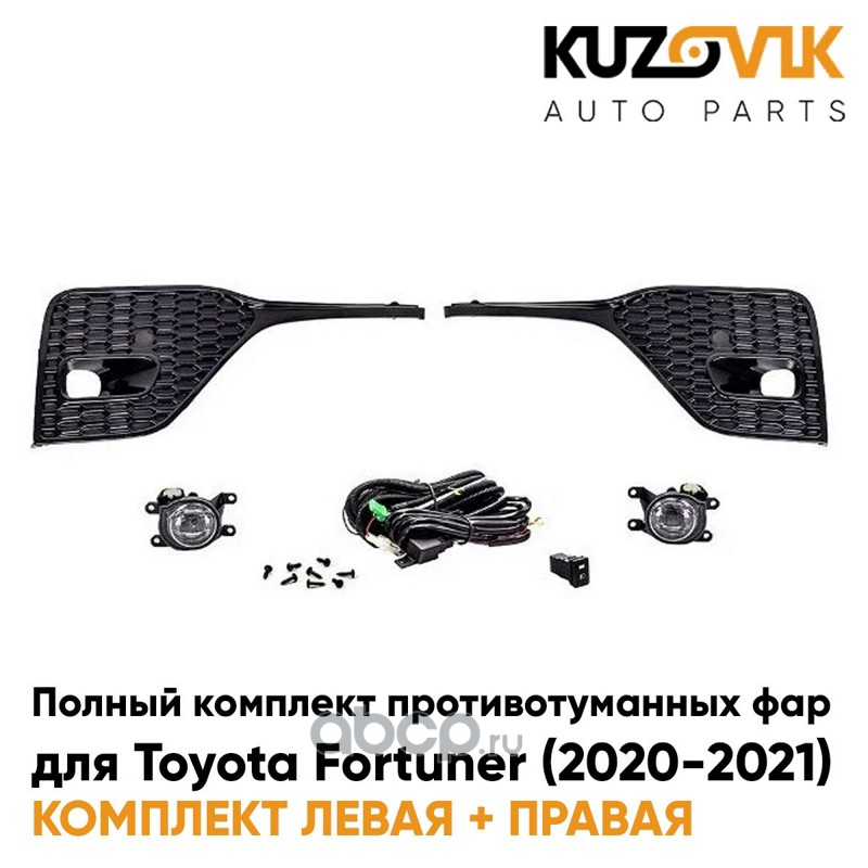 Фары противотуманные полный комплект Toyota Fortuner (2020-2021) с рамками, проводкой, кнопкой