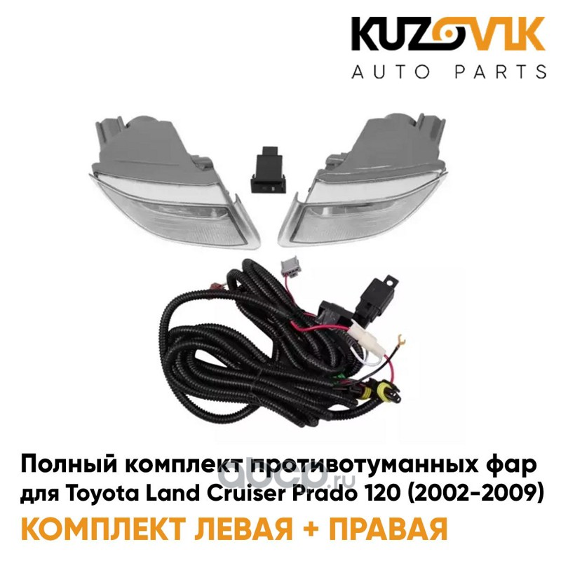 Фары противотуманные полный комплект Toyota Land Cruiser Prado 120 (2002-2009) с проводкой, кнопкой