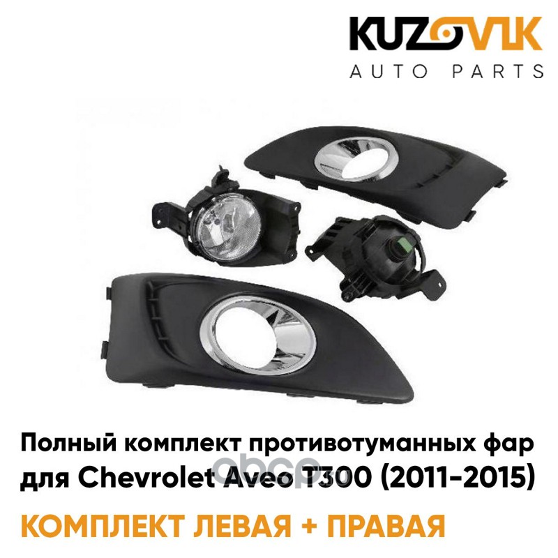 Фары противотуманные полный комплект Chevrolet Aveo T300 (2011-2015) с рамками хром, лампочками