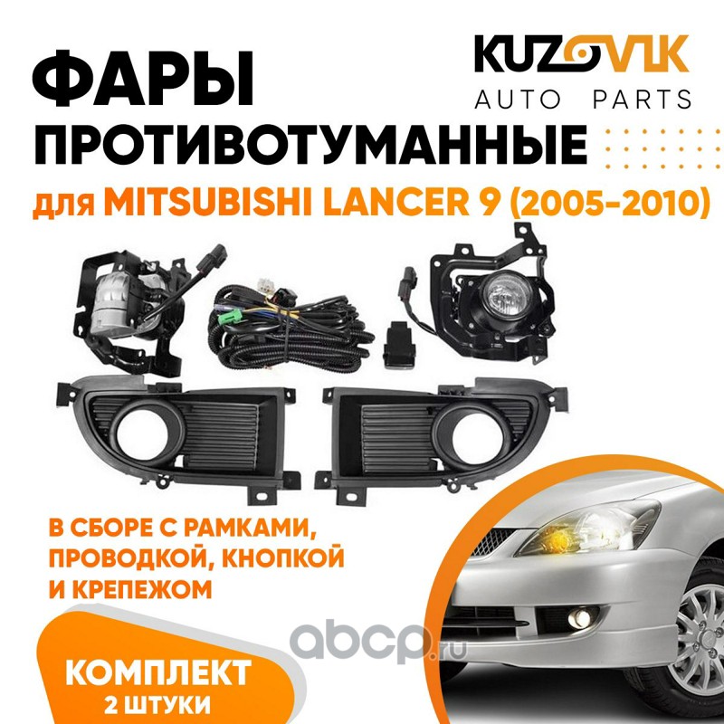 Фары противотуманные полный комплект Mitsubishi Lancer 9 (2005-2010) с рамками, проводкой