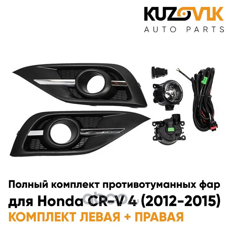 Фары противотуманные полный комплект Honda CR-V 4 (2012-2015) с рамками хром, проводкой, кнопкой