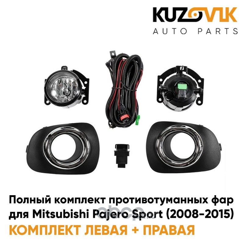 Фары противотуманные полный комплект Mitsubishi Pajero Sport (2008-2015) с рамками хром, проводкой