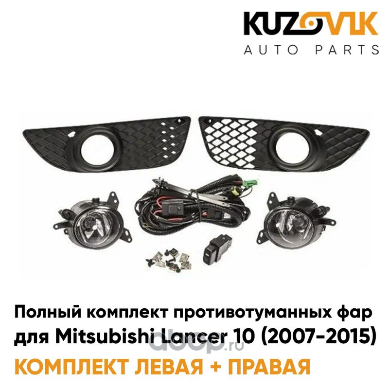 Фары противотуманные полный комплект Mitsubishi Lancer 10 (2007-2010) с лампочками, проводкой