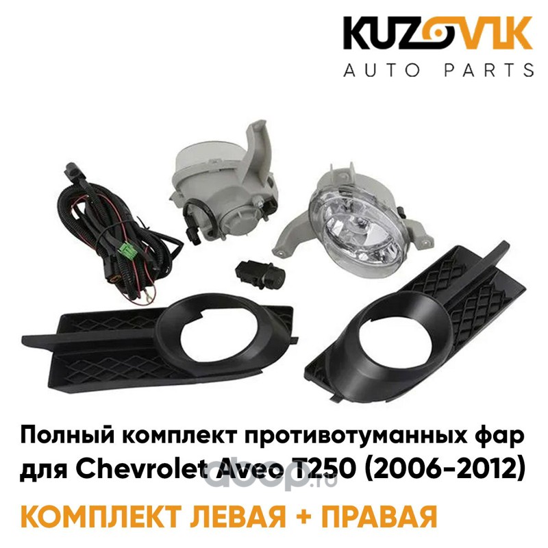Фары противотуманные полный комплект Chevrolet Aveo T250 (2006-2012) с рамками, проводкой, кнопкой