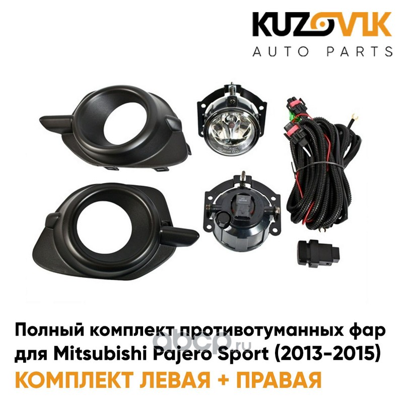 Фары противотуманные полный комплект Mitsubishi Pajero Sport (2013-2015) с рамками, проводкой